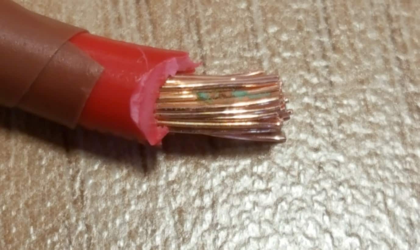 Cut away section of the same damaged cable showing area of copper loss