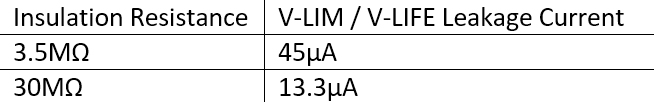 In any given degraded cable, the rate of loss of copper is directly proportional to the magnitude of the leakage current which is being sourced by the insulation monitoring device. This is clearly worse the lower the value of the insulation resistance. The table below compares the leakage current resulting from the Viper V-LIM with a non-Viper, but commonly installed LIM for a couple of low IR conditions: